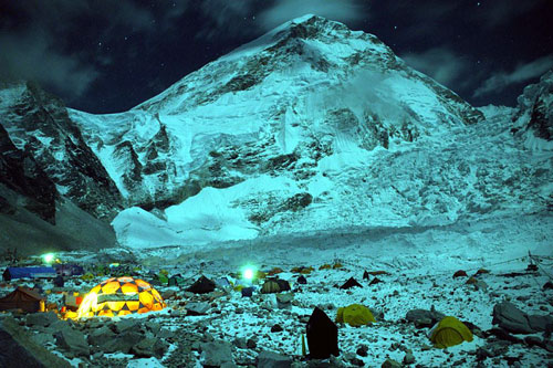 Base Camp at Night. Picture captured by the Polish Everest Team