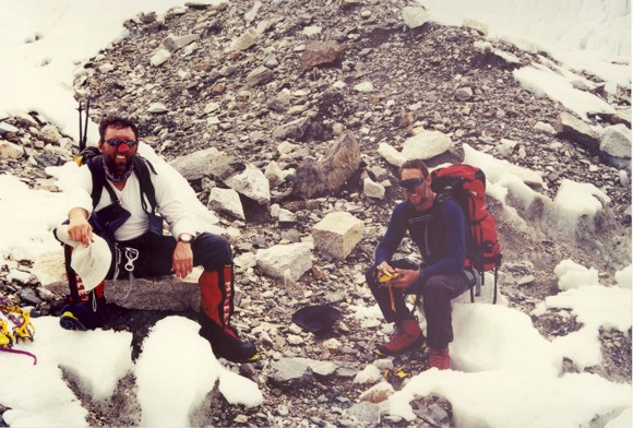 Sean & Vaughan, very sunburnt, at the bottom of the Icefall after returning from their trip to Camps II and III, 9th May 2006