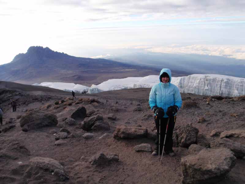 Jacqui and Kersten Glacier with Mawenzi in the Background