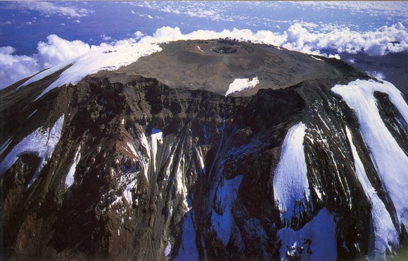 Aerial view of Mount Kilimanjaro and Kibo Crater