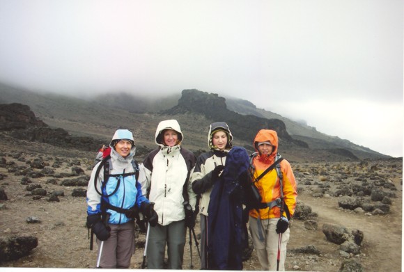 Clarice, Gail, Kimberly and Alix on the way to Lava Tower: Weather - rainy and chilly