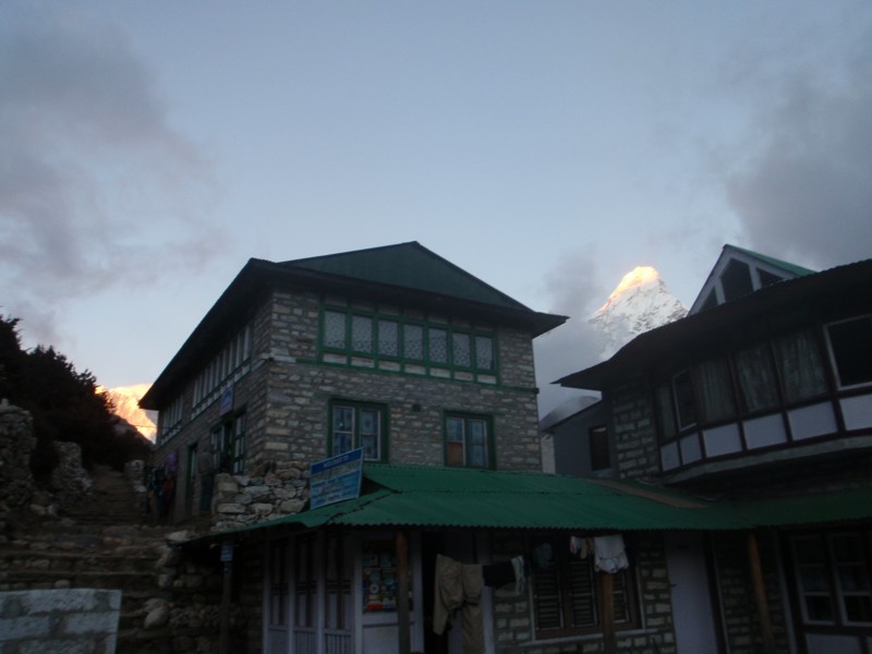 Lodge in Pangboche with Everest and Ama Dablam behind